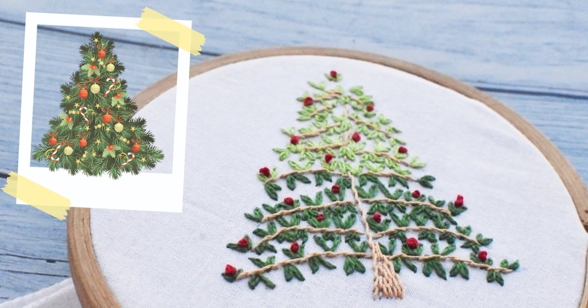 Here are some simple embroidery designs for your Christmas-related project. You do not need a complex step-by-step guide to creating a basic Christmas tree embroidery project – it is as easy as making a geometric pattern or a simple scribbled drawing and the most basic embroidery stitches.