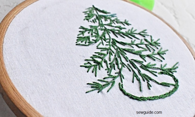 For a textured look, similar to the pine tree leaves, you can use fern stitches or straight stitches to make up the leaves of your tree.