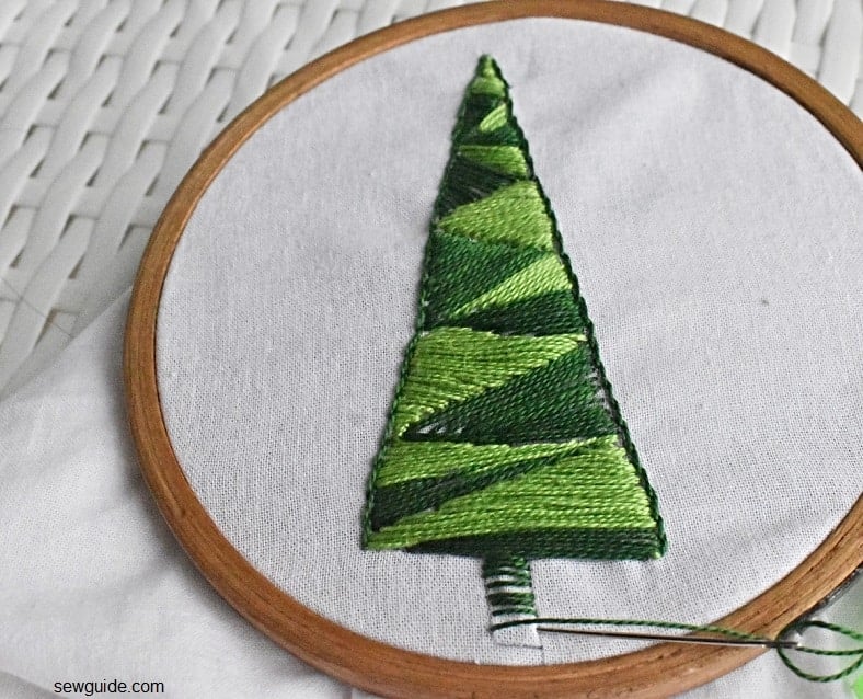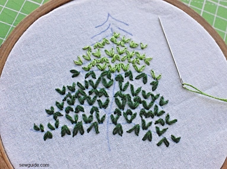 Fill the whole tree with similar stitches. Use different colored thread (in shades of green) for a shaded look.