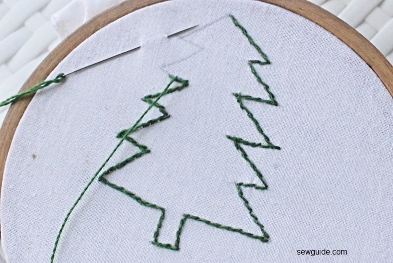 To embroider your tree, you can use all shades of green, from the brightly colored lime greens or parrot greens to muted greens like olive green or moss green to dark shades of green like hunter green and jungle green. But I guess you can’t go wrong with green shades like pine green and fern green. You can add metallic threads or sparkling embellishments to your embroidery to capture the festive spirit.