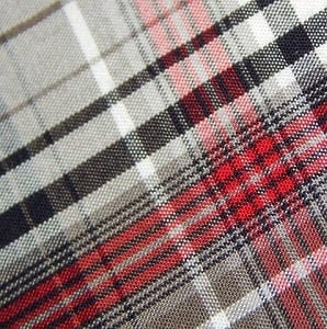 This is an all over check pattern with big squares formed by the intersection of two different colored yarns, usually red and black ; It is popular in home furnishing and for making casual shirts.