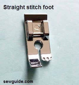 If you have a straight stitch pressure foot, use that. This foot has a small hole, and will make sure that you have a straighter straight stitch than if you were using a zig zag foot or the multipurpose foot. It is especially useful when sewing thin fabrics.