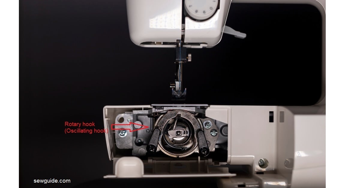 Rotary hook is that part of the sewing machine, that enters the loop or needle thread and carries it around the bobbin case to form the lock stitch.