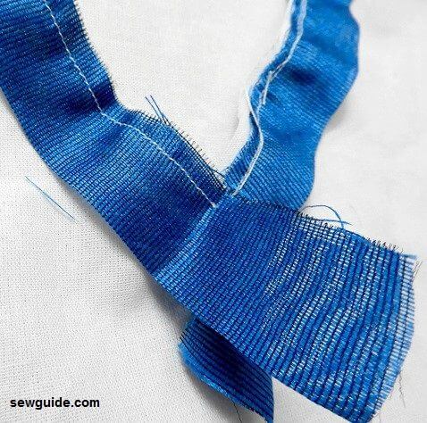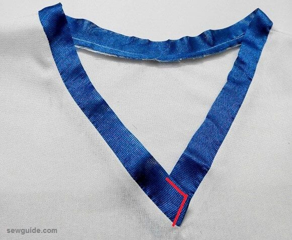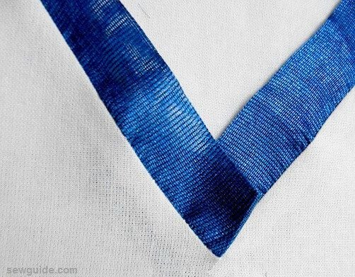 Continue to attach the binding till the v tip ( the stitching line tip) on either side