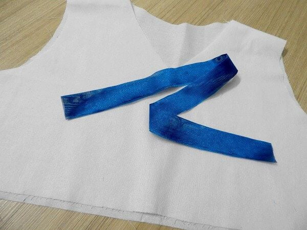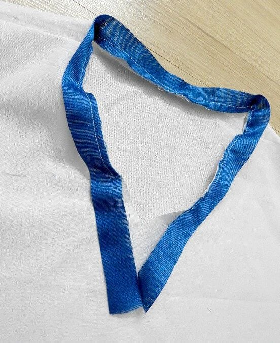 You will need to cut the bodice so that the neckline can accommodate the extra inches of the width of the binding. Here I have cut an 8-inch wide neckline.