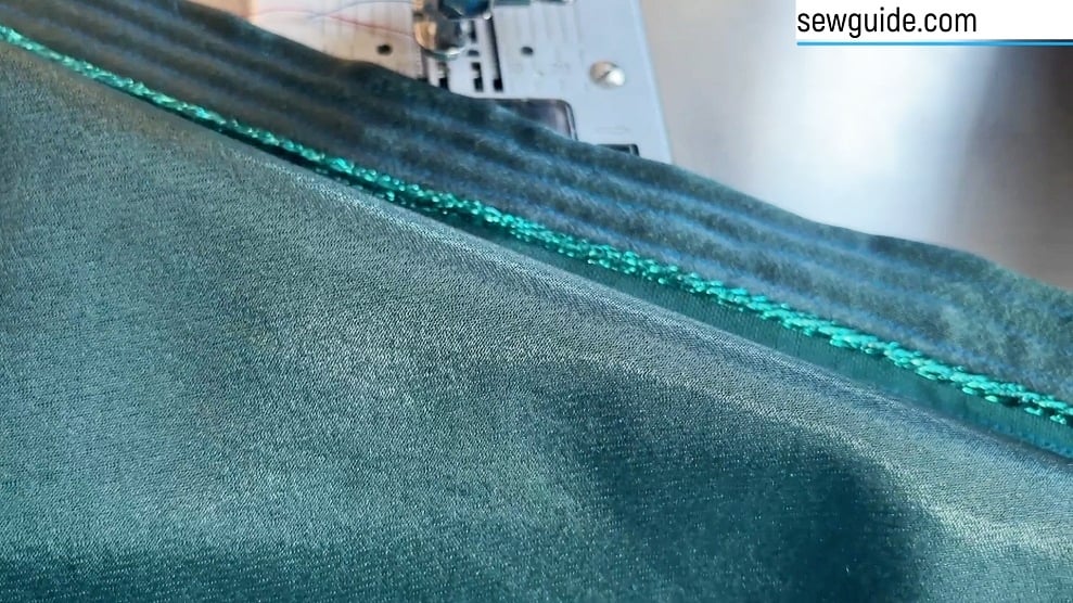After making this, the garment edge is kept on top of the welt and sewn in place.