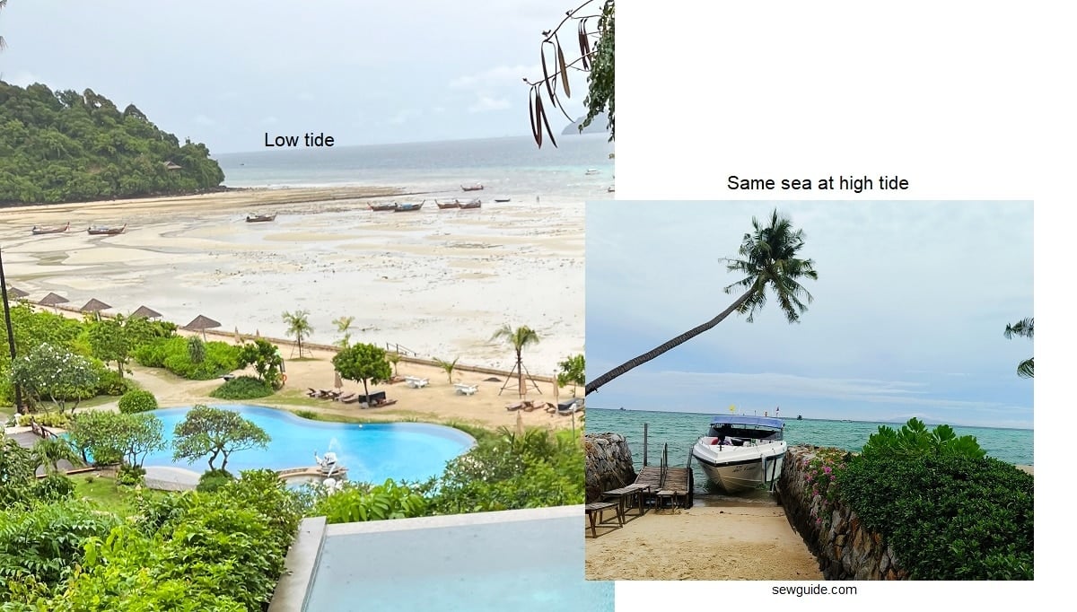 There is a phenomenon in islands in Thailand that works like this: during high tide, the sea advances, and during low tide, the sea recedes, exposing a vast area of the seabed, to the point that a vast area of sea will be land for some time.