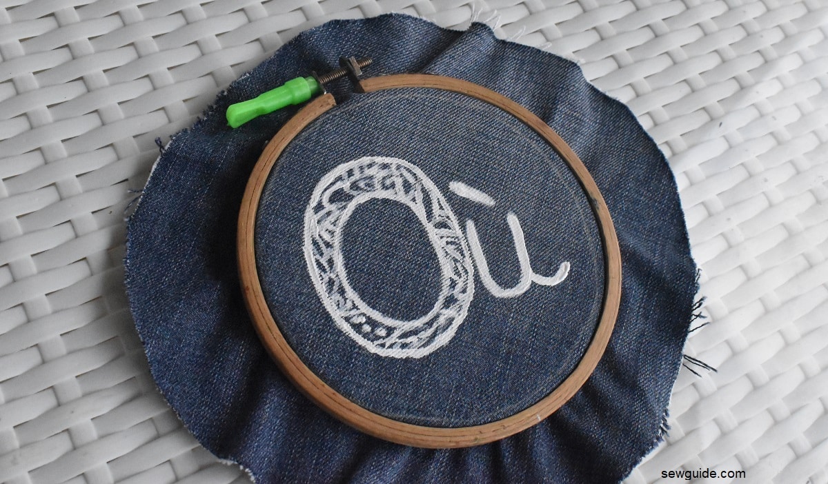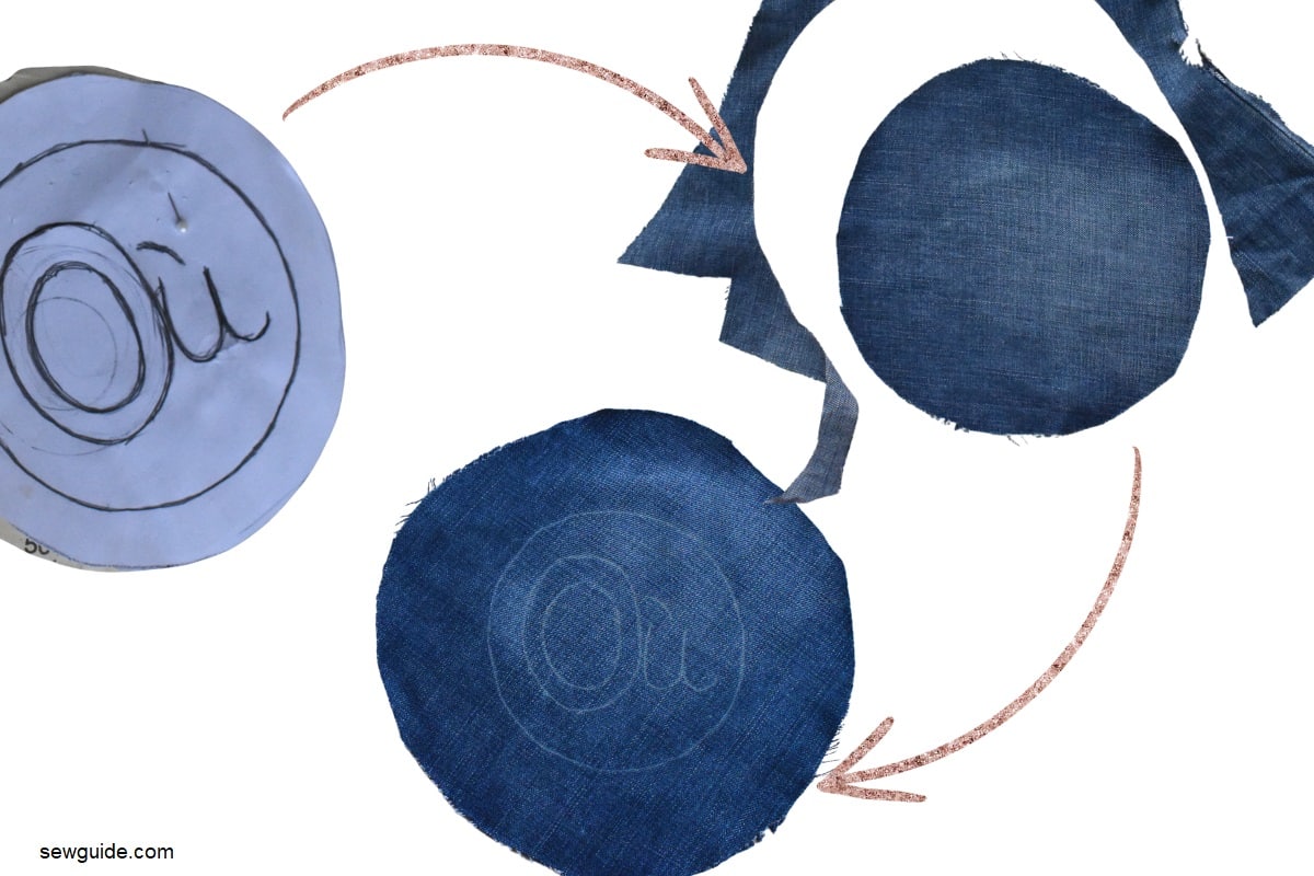 First draw your design on paper. Use a tracing paper to trace it on to the denim fabric.
