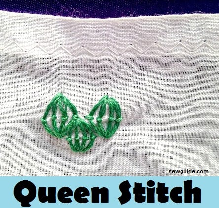 The queen stitch is usually worked on even weave fabric. Use a thread that has a firm twist to it.