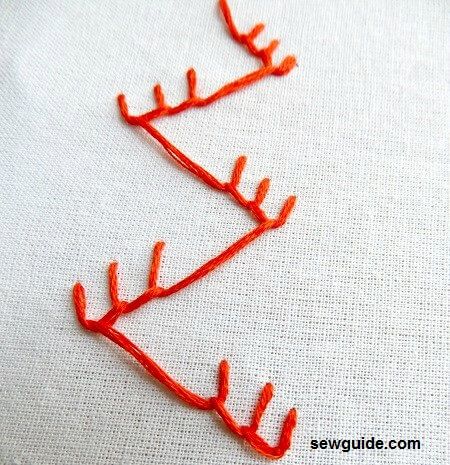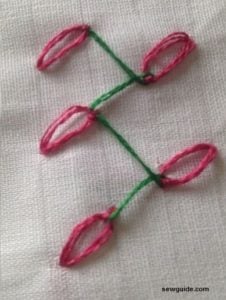 Looped stitches are made on the left and right, base stitch being the one in fishbone stitch.
