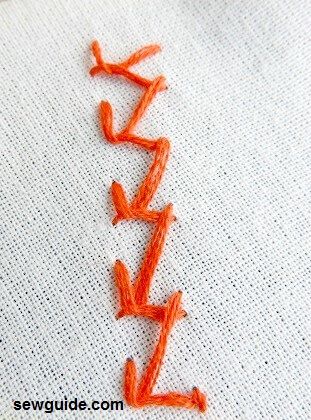 The feather stitch is a wonderful embroidery stitch you can use for border designs and used in floral designs. It is named so because of the feather like look of the finished embroidery stitch.