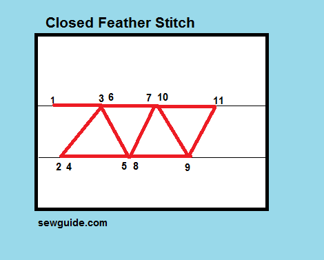 The closed feather stitch has slanted loops made along two parallel lines ( imaginary)