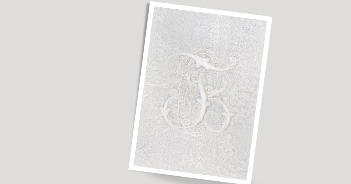 If you see a monogram in which the middle letter is bigger, you can read the monogram as first initial, last initial ( the bigger one), and then the middle name initial. - When sewing the monogram, start with the center letter – you can then better position the other letters
