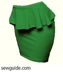 A skirt without a side seam with one part overlapping the other side on the front.