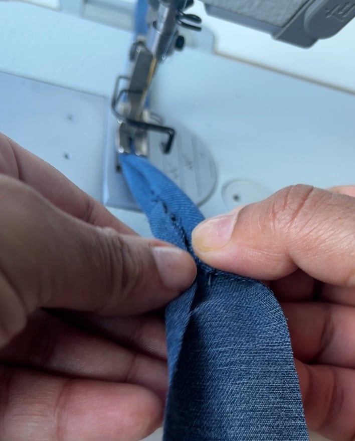 Then bring the wrap ties on the back panel to the front and tie it there. Hide the ties under the hem.