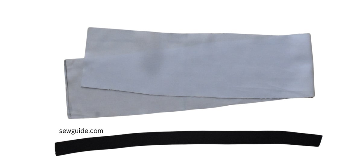 Cut the waistband fabric. Cut it in length, equalling hip round plus 3 inches. Cut the elastic too.