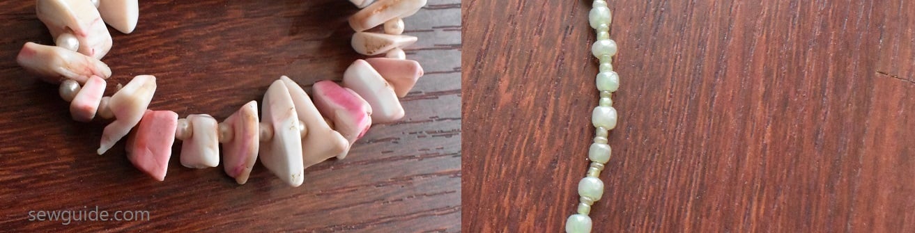Choose stringing thread according to the hole of your beads. If the bead has very large hole, you will need to use thicker stringing material or make big knots in between. If your beads are of different sized holes, then choose according to the smallest hole.
