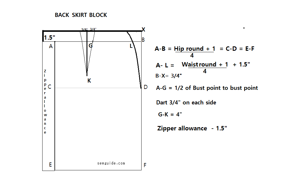 Take your Waist round and divide by 4. Add 1/4 inch ease. Add 1 inch for dart.