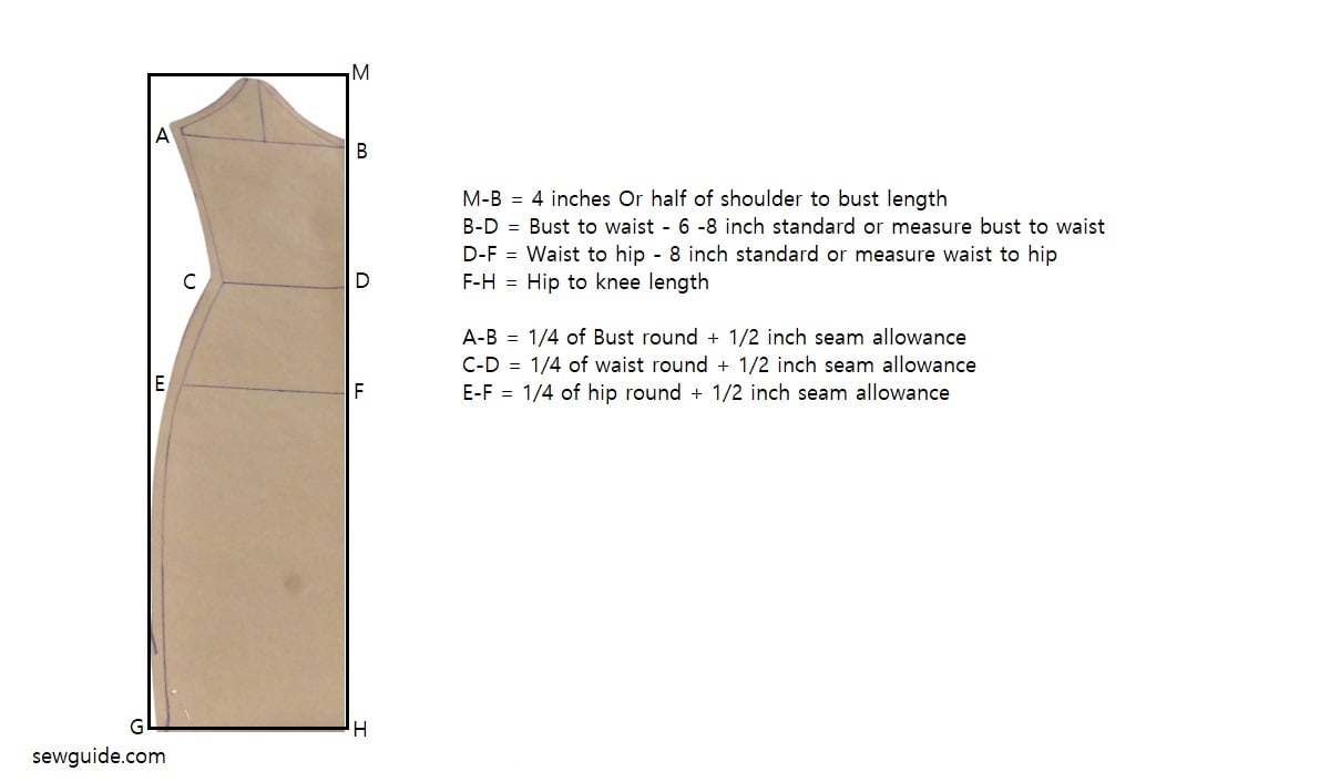 A-B = 1/4 of Bust round + 1/2 inch seam allowance