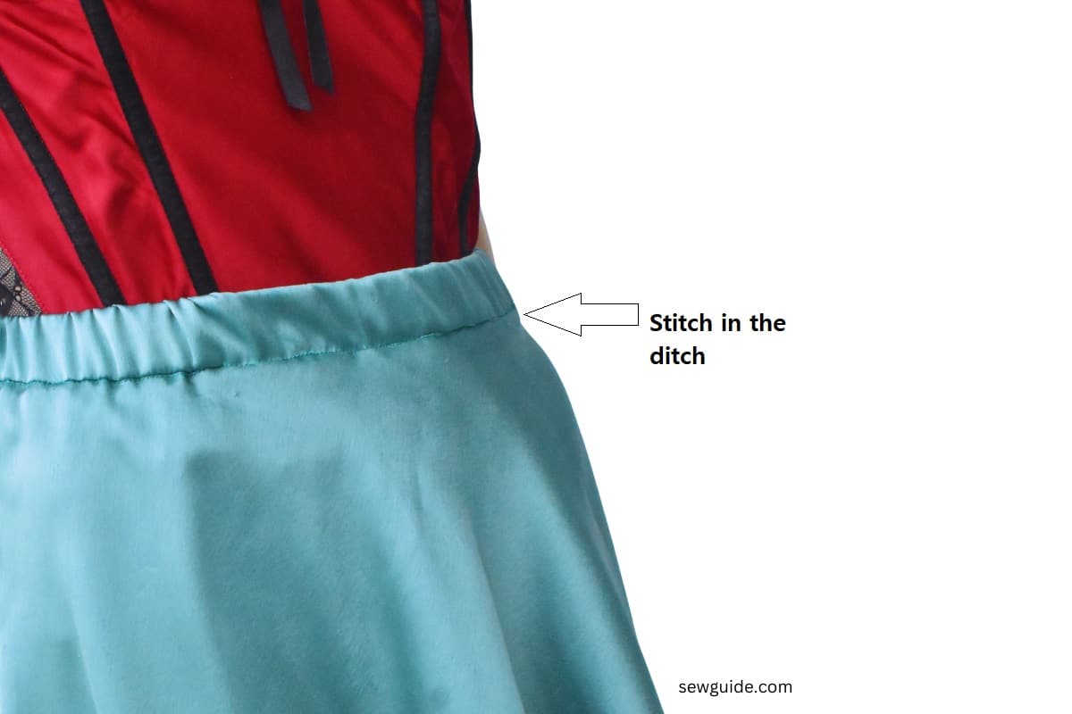 A close up of the waistband after the stitch in the ditch is done (This ensures that no stitching is seen on the top of the waistband)
