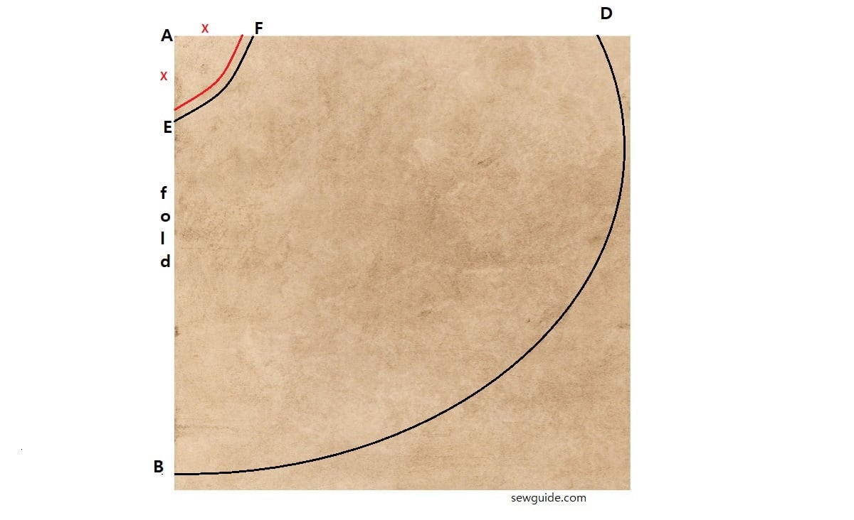 Likewise, mark the length E-D and F-D. Mark extra seam allowance of 1/2 inches, down.