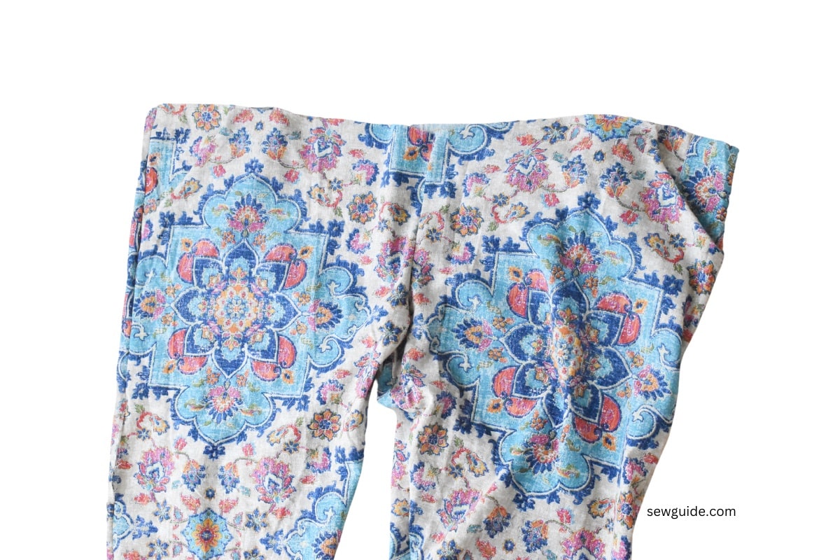 These yoga pants can be made of a breathable fabric like cotton, linen, or cotton-poly blend. If you are making it in a stretchy fabric like cotton knit or cotton-lycra, I suppose you can reduce the width by about 4-5 inches. You can make adjustments to the pattern and make it according to your body dimensions.