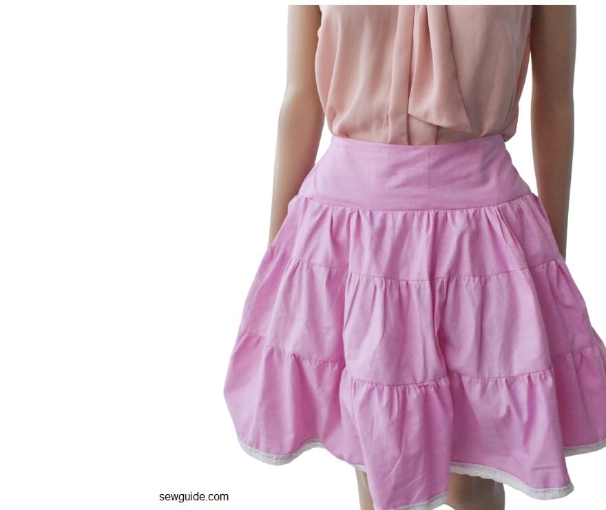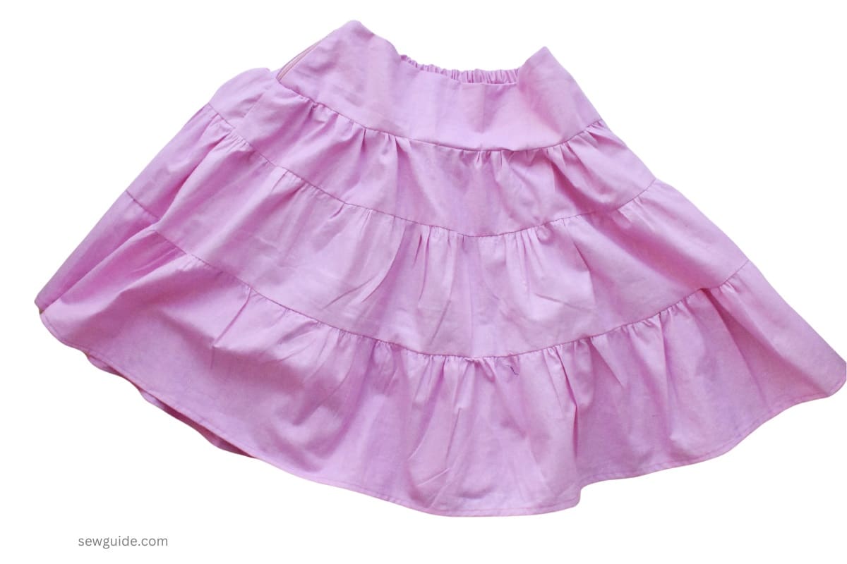 You will be adding 3 tiers under the waistband. Add additional length if you want a longer skirt that 18 inches long. I have cut the first tier 4.5 inch in length; second tier is 6 inches long and the third tier is 7 inches long. Cut the strips in the length given here – first tier is 2 times hip round, second tier is 3 times hip round, thirf tier is 4 times hip round.