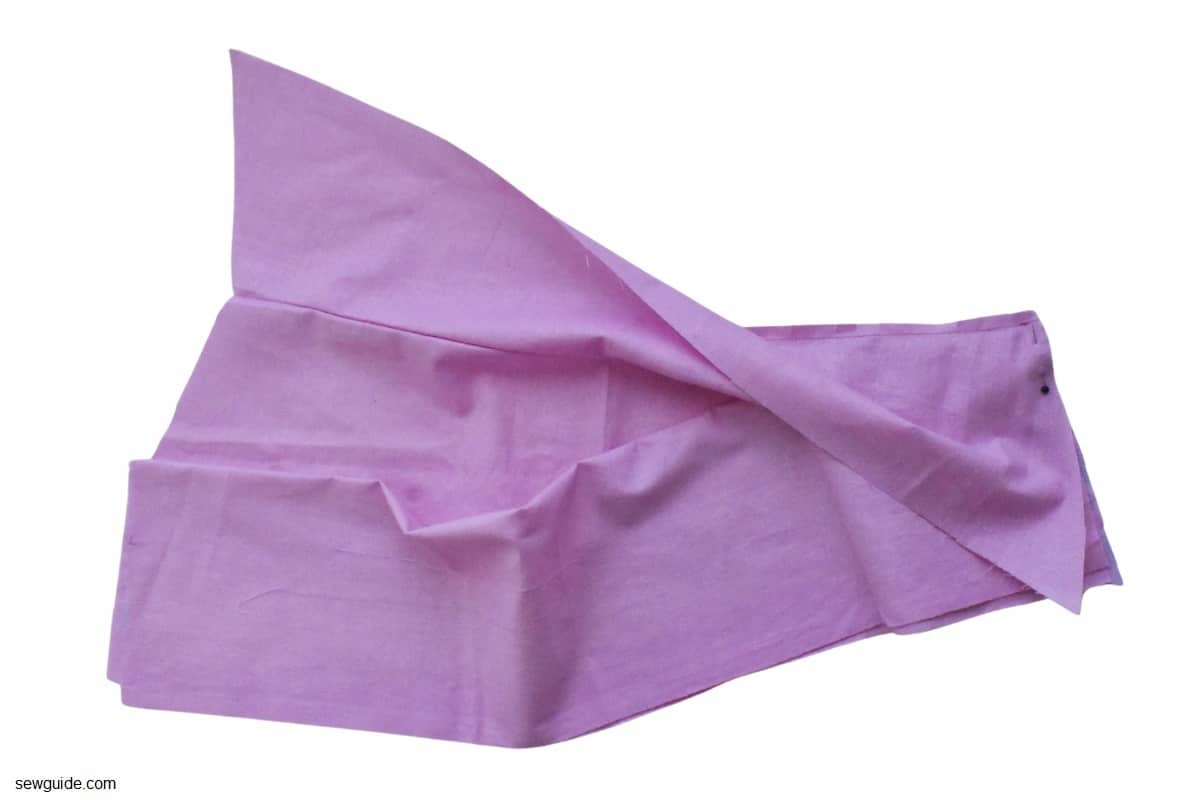Cut this also on fold. It is just a rectangular fabric piece. Cut it 10 inches long. Width of the waistband = 1/4 of the hip round + 2″