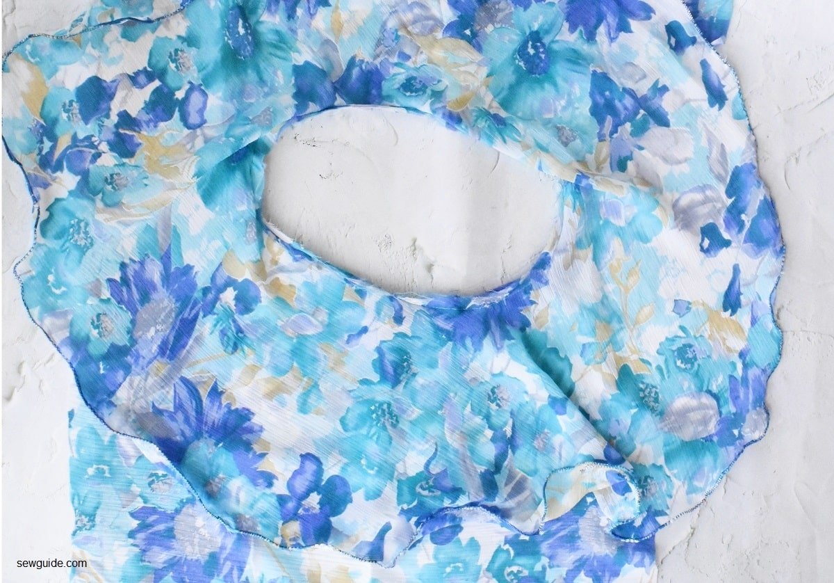 Skills you need to sew this neckline top : Knowledge of making a simple bodice top (Basic bodice block drafting Tutorial), cutting and sewing thin fabric (a challange of its own), hemming an edge with a hemmer foot, cutting a circle from a rectangle fabric.
