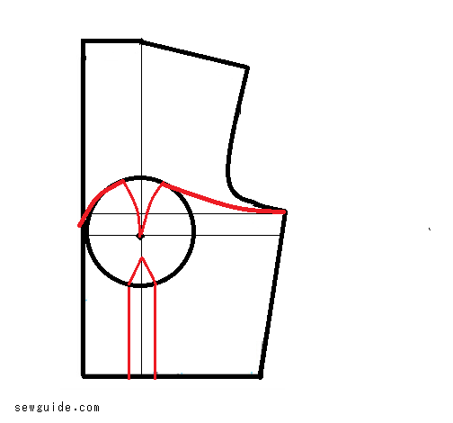 Mark the top edge curved to the armhole as in the picture below.
