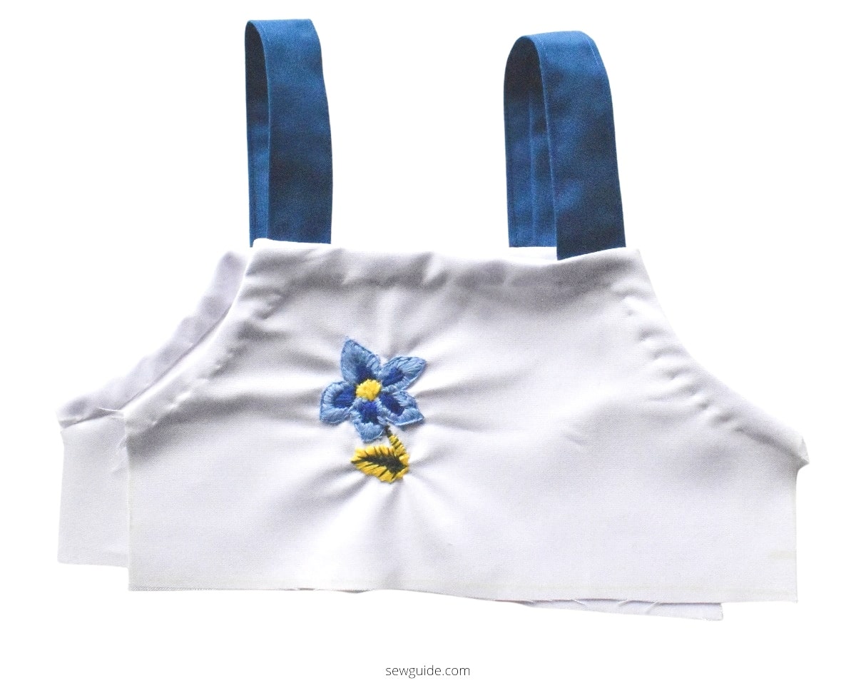 Cut out 2 fabric pieces 2 1/2 inches wide and 8 1/4 inches long to make straps for your dress.
