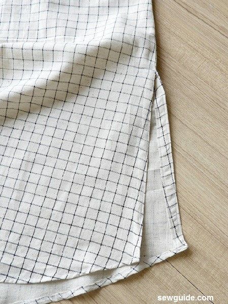 Stop 10 inches from the hem for both sides – this will be a slit ( if you do not want a slit continue sewing till the hem)