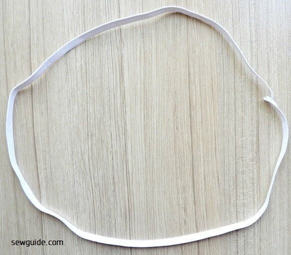 Take  a piece of elastic (1/2 inch) . Keep it around your waist. It should be comfortable around your waist. Add 1/2 inch extra as seam allowance. Cut it out.