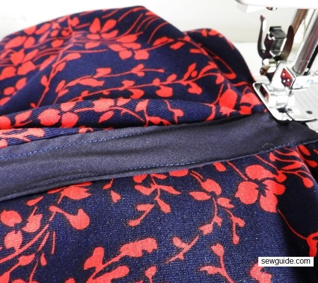 An overlock stitch by the serger is perfect for finishing the edges of your knit fabric neatly; Otherwise, on an ordinary home sewing machine use a stretch stitch – the zig zag stitch present in most of our sewing machines would do. If you use a ballpoint needle, there will be less damage to the knit fibers – not necessary though.