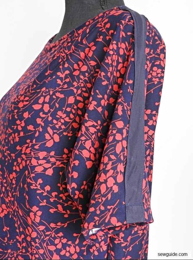 Join the side seams of the front and back as usual – rightsides together. Fold the hems (bottom edge of the top and sleeve hem) and stitch in place.