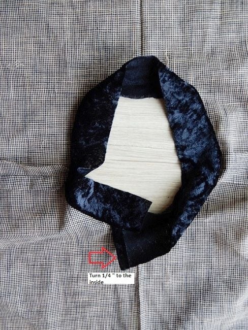 Trim the facing to about an inch around the slit. Fold and sew in place at the back. You may want to baste stitch before sewing with the machine or simply hand stitch it in place.