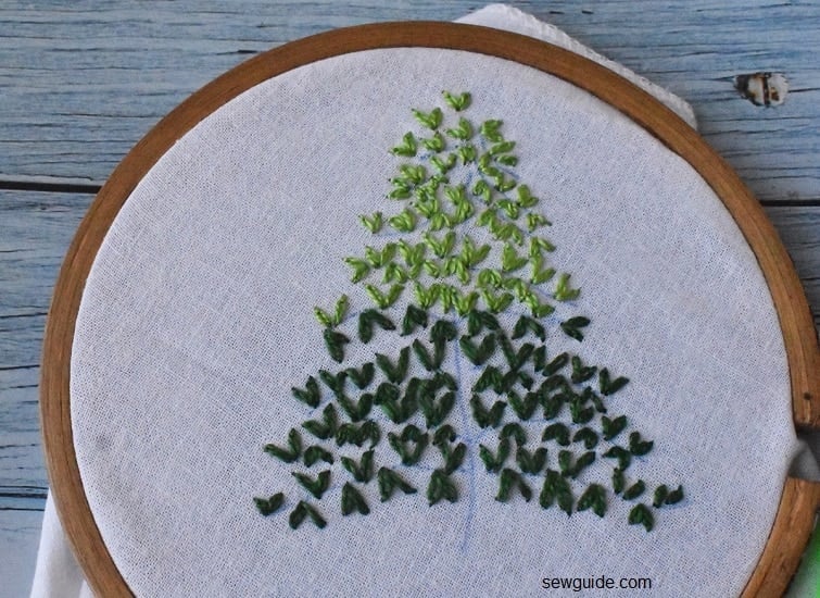Fill the whole tree with similar stitches. Use different colored thread (in shades of green) for a shaded look.