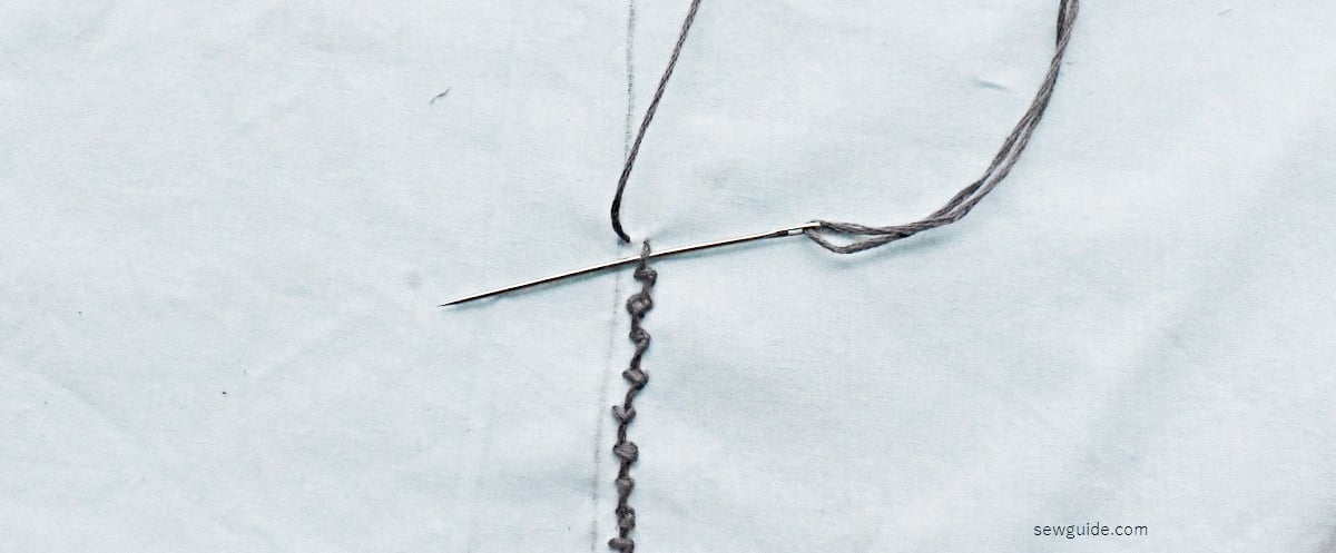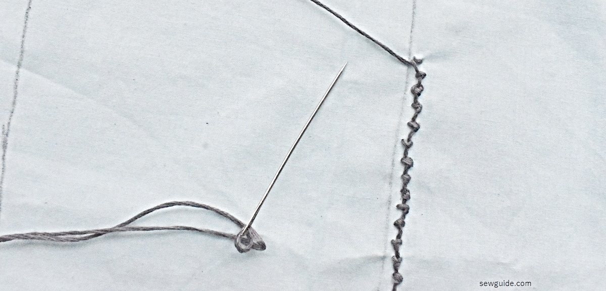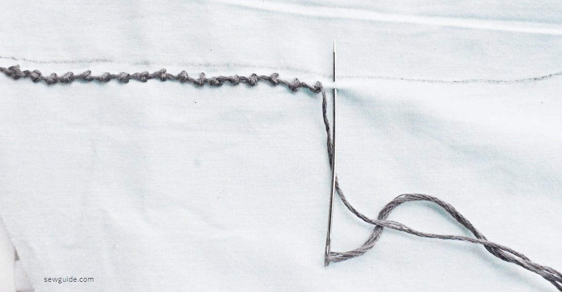 First mark your neckline – add a parallel line to your neckline and sew herringbone stitches in a row.