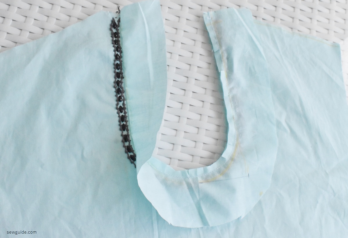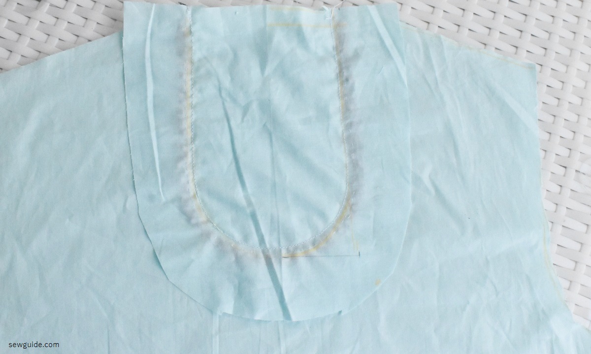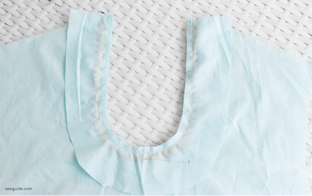 After the work is done, keep the facing for the neckline face down on the neckline.