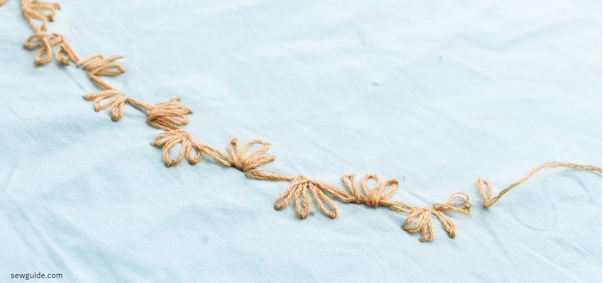 Lazy daisy is a chain stitch variation and a very versatile stitch. And you can make pretty flowers with this stitch alone.