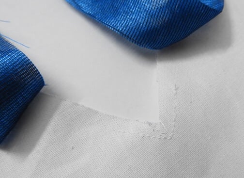 Continue to attach the binding till the v tip ( the stitching line tip) on either side
