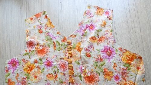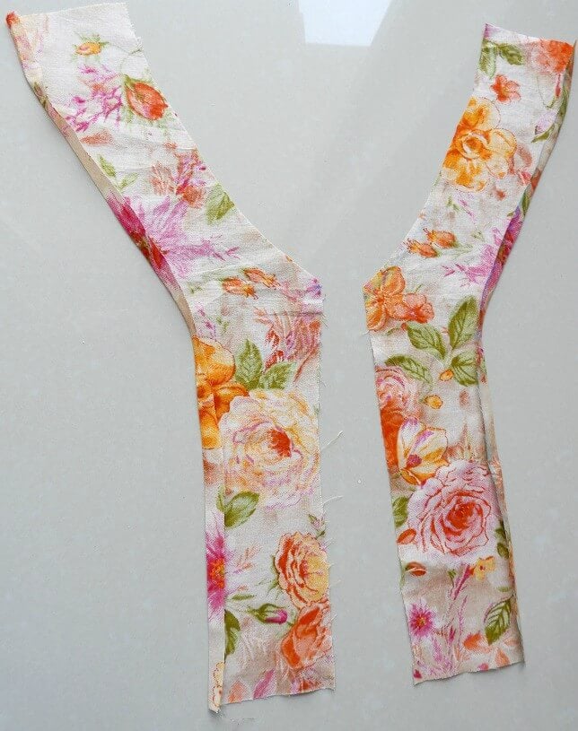 Cut vneckline facing for both the pieces. Keep the button loops on the center edge of the front bodice piece.