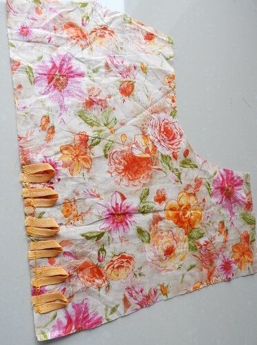 Now start attaching this to the neckline from the center back (aligning the center of the fabric strip and the center back) right sides together