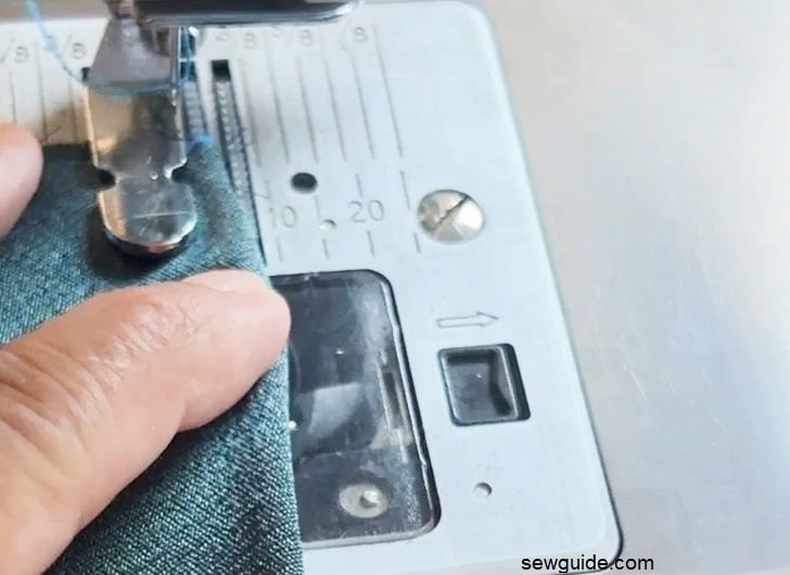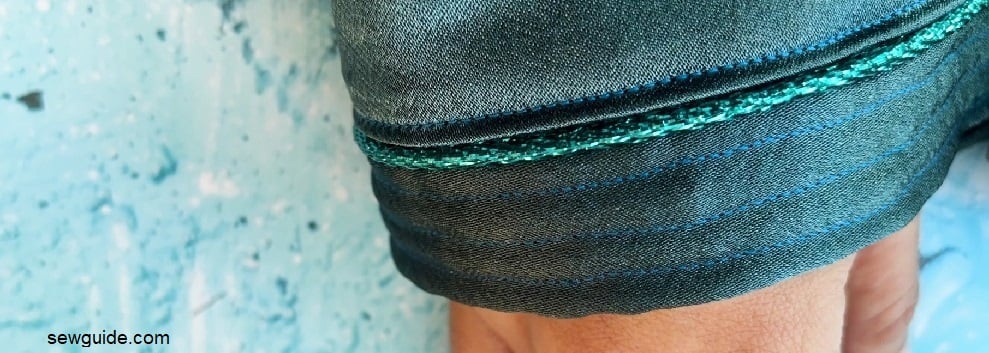 After making this, the garment edge is kept on top of the welt and sewn in place.