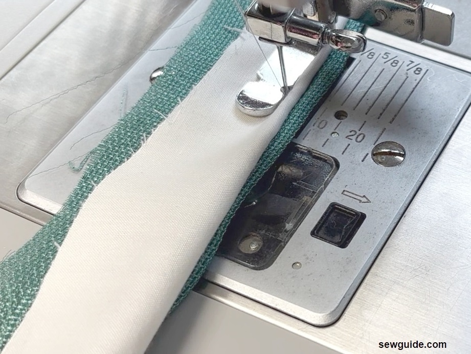 When sewing this corded material into your seam, the Zipper Foot is usually adjusted to the right of the needle. Keep the foot as close as possible to the cord, as you sew.
