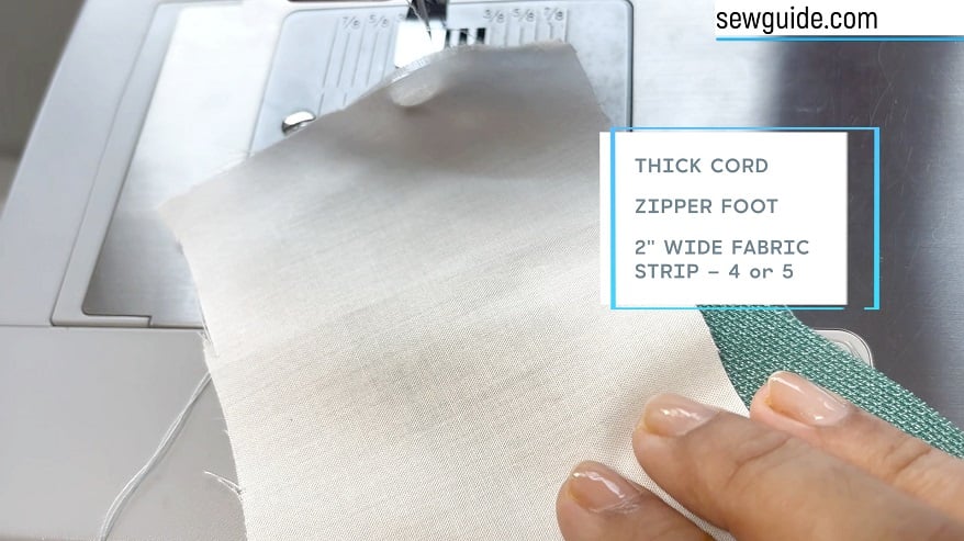 To make this, Keep the cords (4 or 5 of them) inside the folded fabric. Keep stitching close to the cord. I added a piping for added texture and shine.