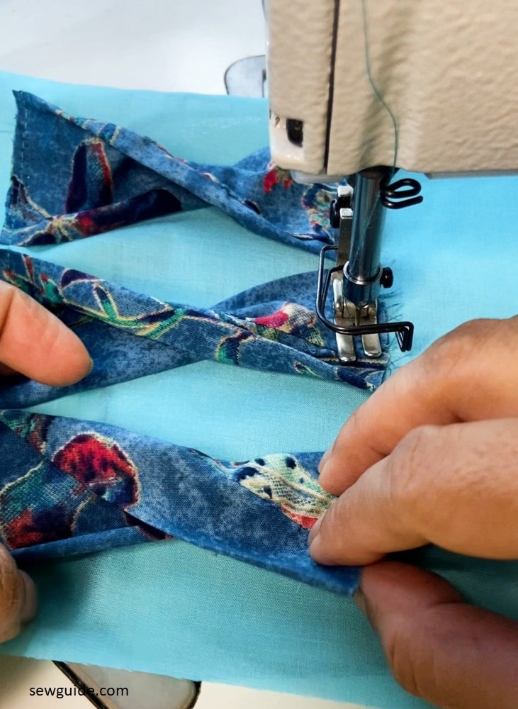 Sew the fabric pieces to your sleeve by top stitching along the edge, on one side