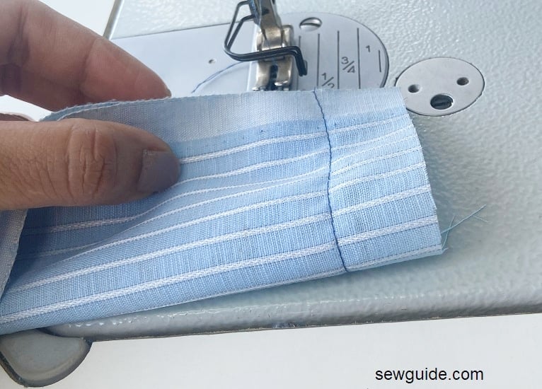Now fold the fabric from the bottom edge up, aligning the stitching line.