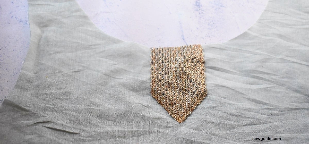 Cut a simple round shape on the tunic bodice fabric. This neckline design suits a round neckline.