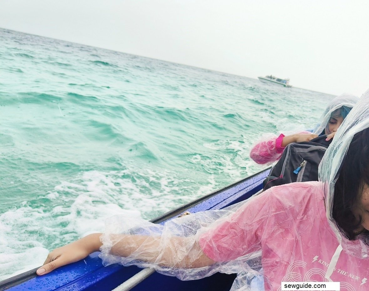 It happened like this – We had booked a villa at a resort on Phi Phi Island, but we were slightly late for the original speedboat that was to take us there. When we arrived, it was low tide, and the sea had receded, so our speedboat couldn’t dock at the jetty. Instead, they transferred us mid-ocean to a small boat. And I had sea sickness due to the rocking of the boat (so if you are prone, pack some gum or medicine for this). And to top it all, it was raining. And after landing, we had to walk the rest of the way through ankle-deep water.